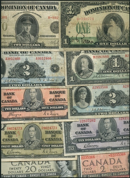 Canada, s group of notes consisting of, Dominion of Canada, $1, 1917, $2, 1923, Bank of Canada, $1, 1935, $2 (3), 1935, $2, $5, $10, $20 (2), all 1937, $20, 1954 (Devil's Hairdo), $2, $10, $20, 1954