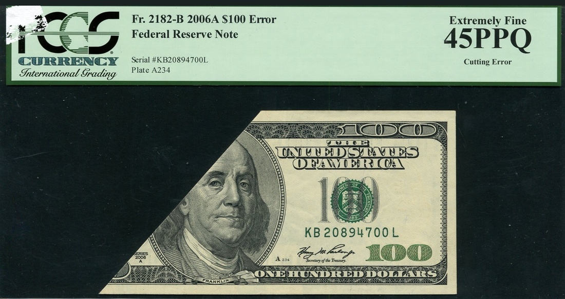 (FR 2182-B), in PMG holders 45 EXTREMELY FINE PPQ. Cutting error at left, rare (3)