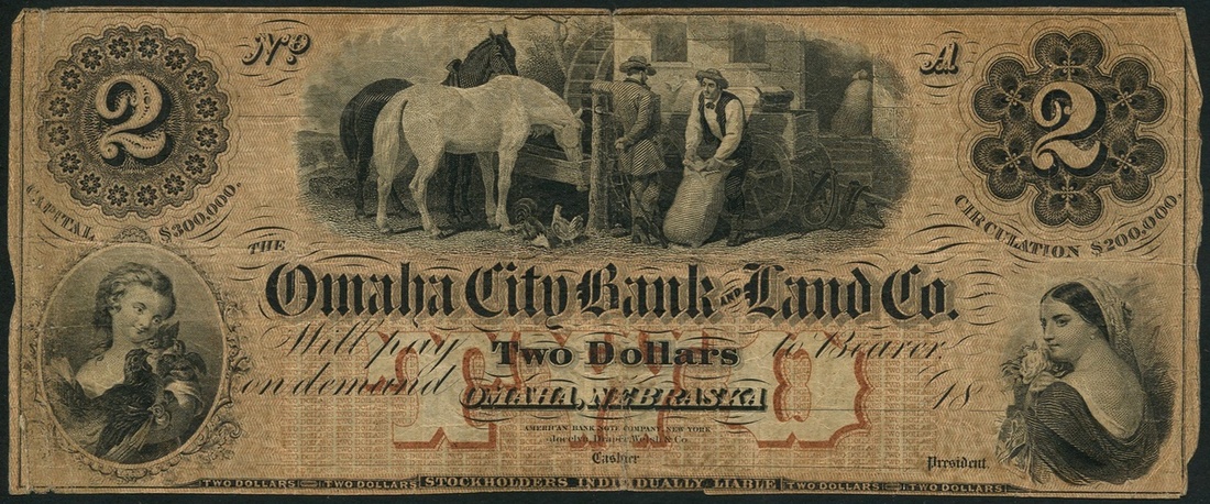 A selection of US obsolete currency, comprising International College Bank $1, Bryant, Stratton & Co's., Merchants Bank, Washington, $1, 1852, State of Florida $1, 1864, Omaha City Bank and Land Co. $2, Hoboken Banking and Grazing company, $1, 1828