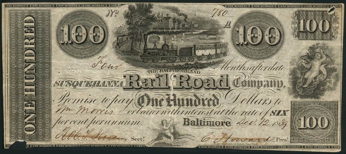 A selection of US obsolete currency comprising Farmers and Exchange Bank of Charleston, $20, 1853, Republic of Texas $1 of 1841, Susquehanna Railroad $100 of 1839, Black River Bank $3 of 1862, Washington County Bank, $5, Calais, 1855