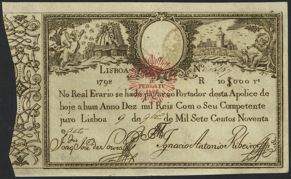 Various documents comprising a Confederate Quartermasters rail warrant, a Sengal exchange bill, 1814, French sight bills (2) of 1793, a Brazil diamond bill dated 1773, a London and Brazilian Bank sight bill dated 1894, Portugal War of the Brothers 10000 reis, 1798, Banco de Arequipa blank receipt, India Hundi (2)