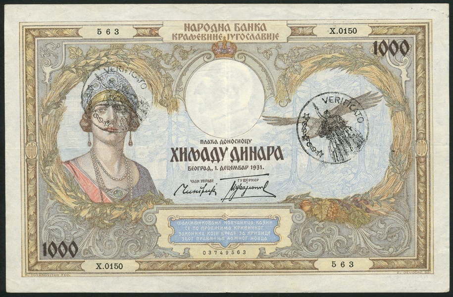Italian Occupation of Montenegro, 10, 20, 50, 100, 500 and 1000 dinara, 1941, multicoloured, several with King Peter II, others with allegorical women, all with black occupation handstamps on face