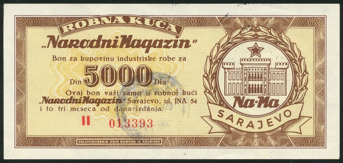 Yugoslavia, Federal National Republic, Beograd/Sarajevo Credit Vouchers, 1 dinara (2), one City issue and one Industrial issue, 5 dinara, Industrial and 100 dinara, Tourist 'good for', all 1951, Greater Zemun, 5,10,20 and 50 dinara, 1954, all handstamp and signature, Sarajevo shopp 'good fors' 100,500,1000 and 5000 dinara, all with red serial numbers, all with handstamp and date 1958 on reverse