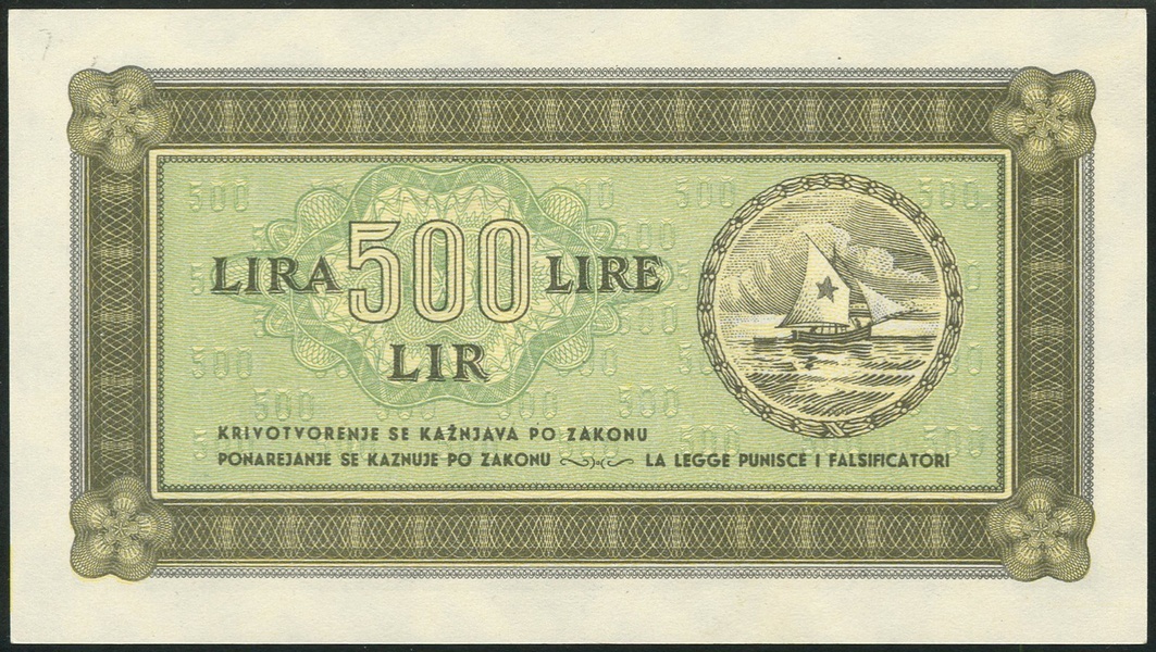 Yugoslavia, Istria, Rijeka, Slovene State Bank, a selection of the 1945 series comprising 5,10,20, all without serial number, also 100 lire, blue and 500 lire, green and brown, both with serial numbers in red