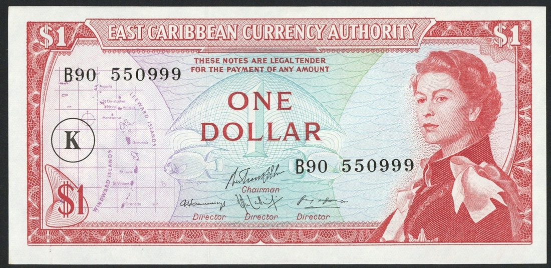 World Banknotes, a small group of notes comprising, Bermuda Monetary Authority, $50, 1997, serial number C/1 453575, Central Bank of Belize, 1990, serial number AA147882, Government of Gibraltar, £1, 1979, serial number K544317, East Caribbean Currency Board, $1 (2), ND (1965), consecutive serial numbers B90 550999 and B90 551000