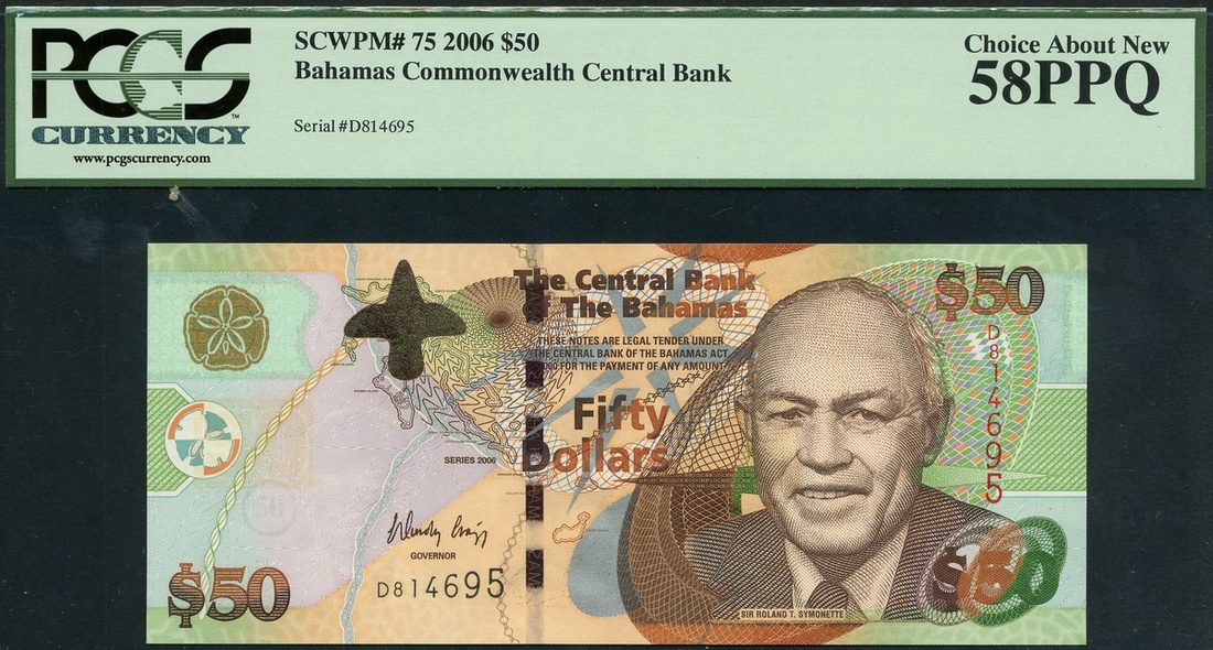 (x) Central Bank of the Bahamas, $50 (2), 2006, serial number D 814695/696, brown and multicoloured, Symonette at right