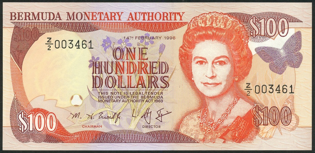 Bermuda Monetary Authority, a selection of replacement notes comprising $100, 1996, prefix Z/2, $2, 1988, prefix Z/2, , $2, $5, $10 and $50, all 2000, all Z/1 and the $10, Z/1 000019 and the $50, Z/1 001112, all Elizabeth II at right