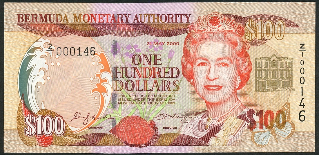 Bermuda Monetary Authority, $100, 2000, serial number Z/1 000146, red and multicoloured, Elizabeth II at right, arms left centre, Lister and Haycock signatures