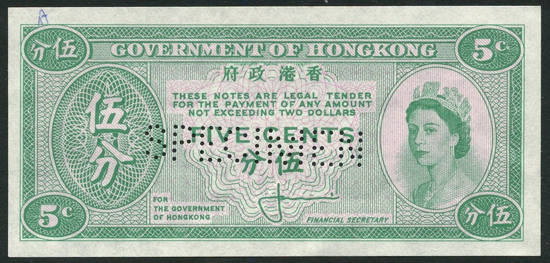 (†) Government of Hong Kong, a printers archival specimen 5 cents, ND (1961), green and pink, Copperthwaite signature