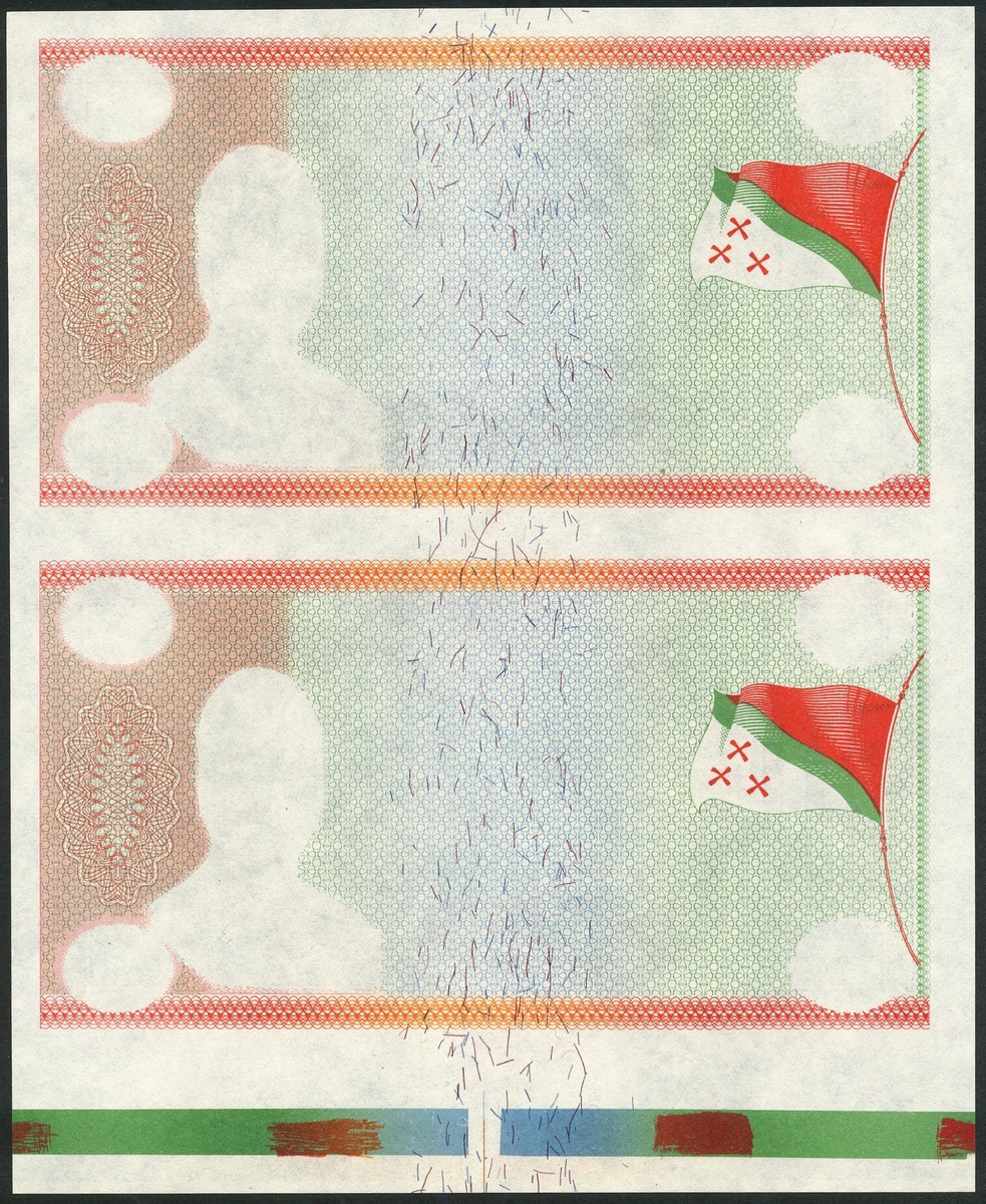 (x) Banque Nationale du Katanga, a group of 10 francs partial printings, ND (1960), red, green and mauve-brown, Katangan flag at right, outline of Moise Tshombe at left, reverse brown and green, smelting plant