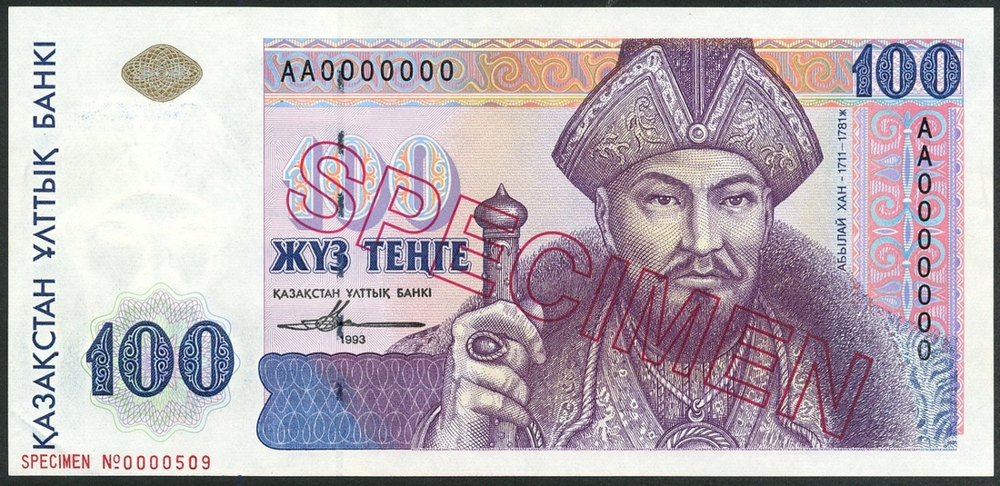 National Bank of Kazakhstan, a specimen set of the 1993/1994 series comprising 1, 3, 5, 10, 20, 50, 100, 200, 500 and 1000 tenge, together with issued examples of the 1, 3, 5, 10, 20, 50 and 100 tenge