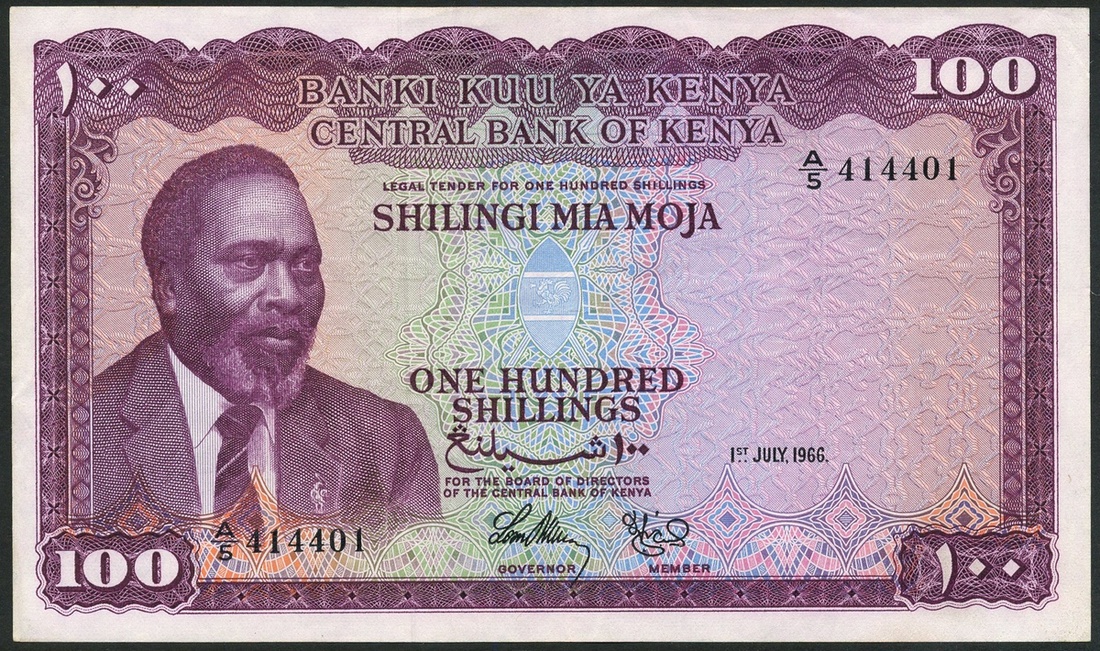 Central Bank of Kenya, 100/-, a selection comprising 1966 (3), 1971 (2), 1974, 1975, 1977 (2), all purple, Kenyatta at left, 1980 (10), 1981 (9), 1989, 1992, all purple and green, Moi portrait