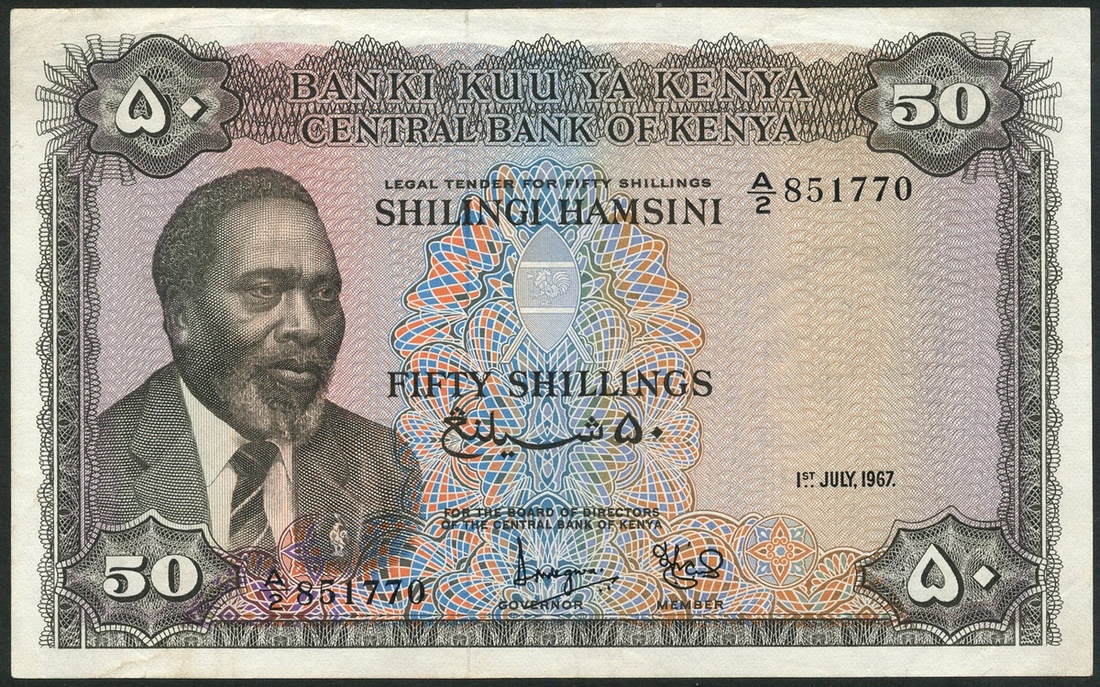Central Bank of Kenya, 50/-, a selection comprising 1966, 1967, 196, 1971, all dark brown, Kenyatta at left, also 50/-, 2003 (2), Kenyatta, also 50/-, 1980 (4), 1990, red, Moi at right