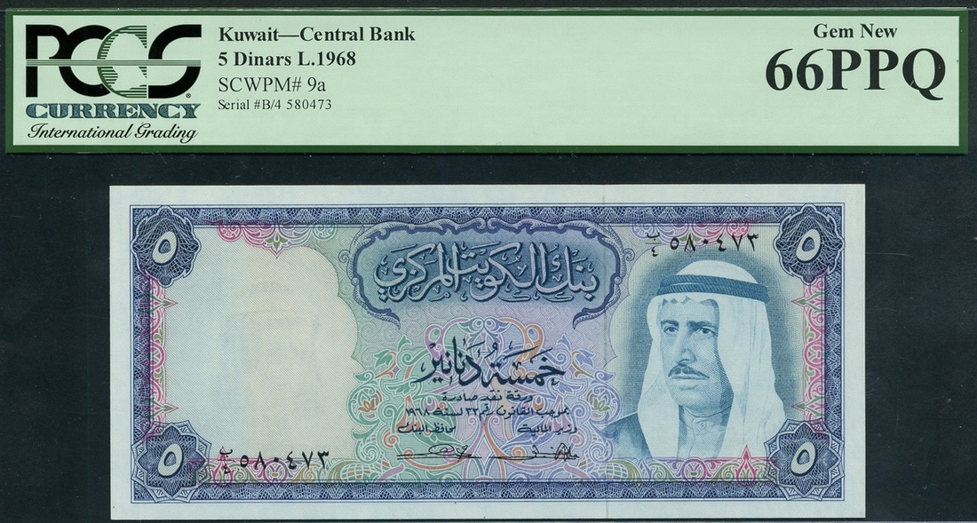 (x) Central Bank of Kuwait, a full set from the Law of 1968 (1970) issue, 1/4 dinar, brown, 1/2 dinar, purple, 1 dinar, burgundy, 5 dinars, blue, Amir Sheikh Abdullah al-Salem al-Sabah at right, Al-Sabah signature