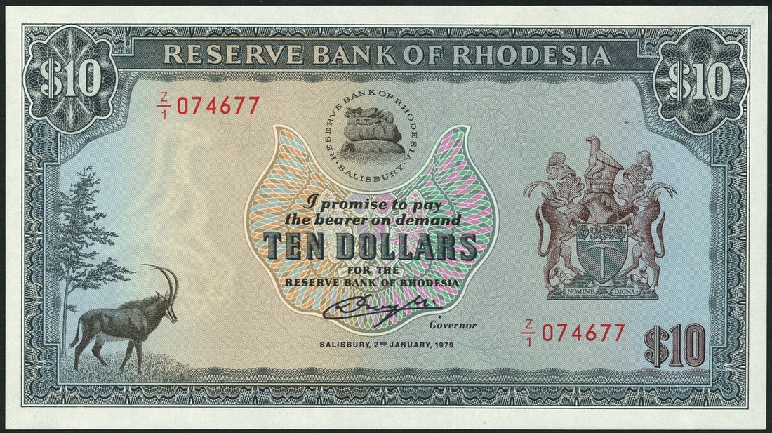 Reserve Bank of Rhodesia, $5 (2), 1976, 1979, brown and $10, 1979, prefix Z/1, blue- grey, also Zaire, 1 zaire, 1977, also Zimbabwe $100 (2), 2007. $500 (2), 2001, Botswana 50 pula, Zagreb 10 kuna, Finland 2 krooni