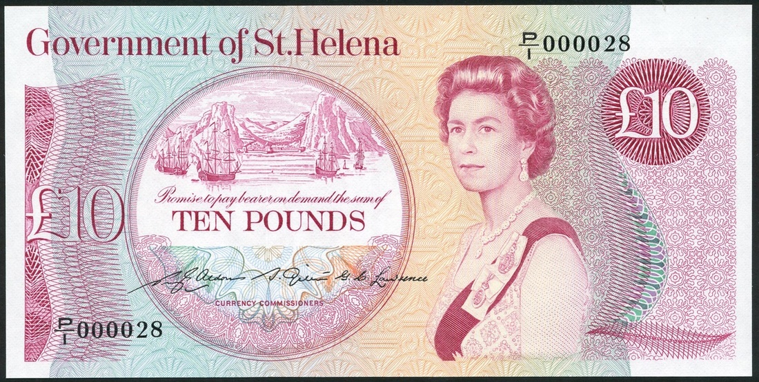 Government of Saint Helena, a set of the first series, ND (1976/1979), comprising 50 pence, serial number V/1 000028, violet, £1, H/1 000028, blue, £5, A/1 000028, green and £10, P/1 000028, pink-red, all Elizabeth II at right