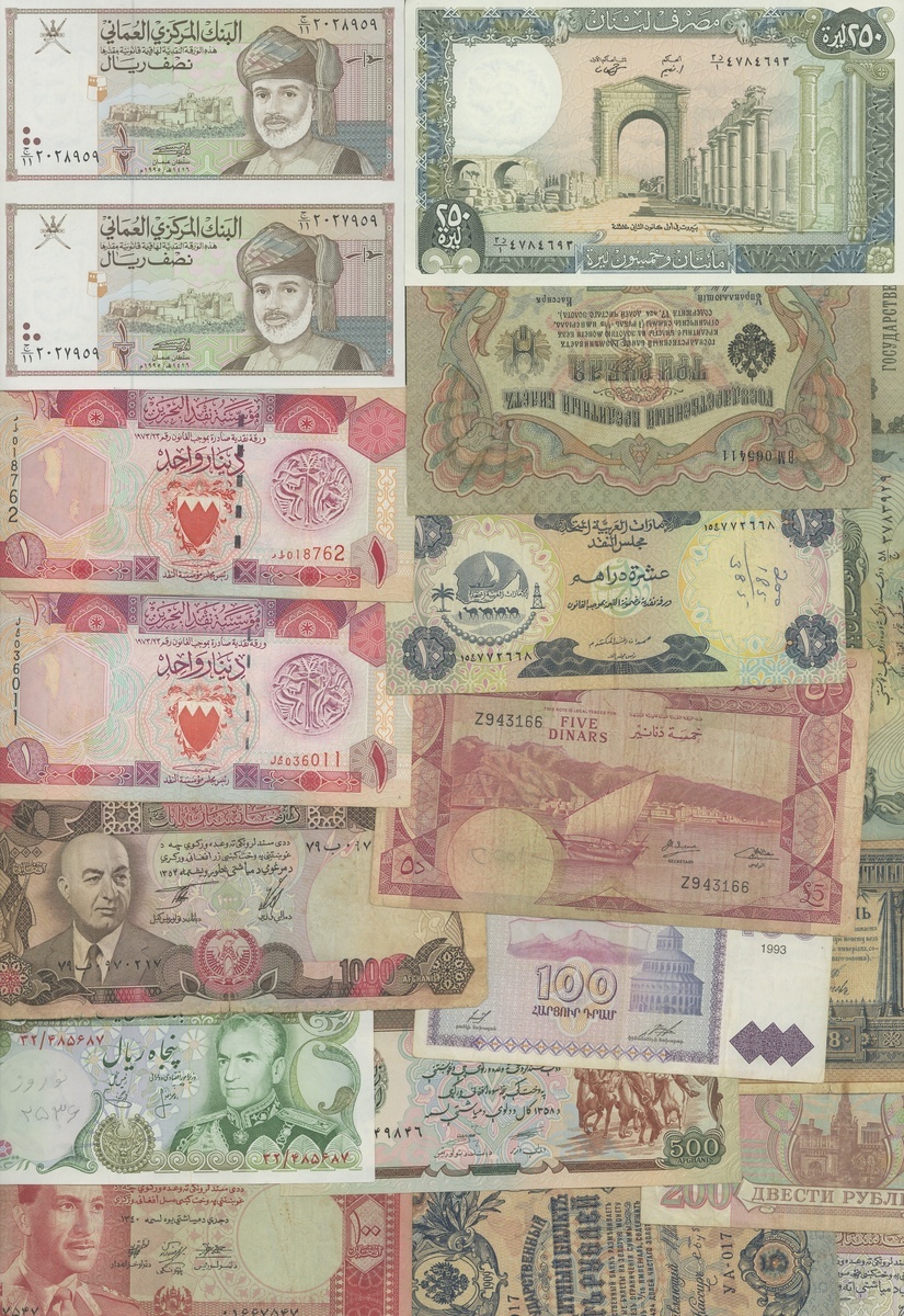 (x) A group of world banknotes, including around 25 Middle-Eastern notes, and a selection of Russian and European items,