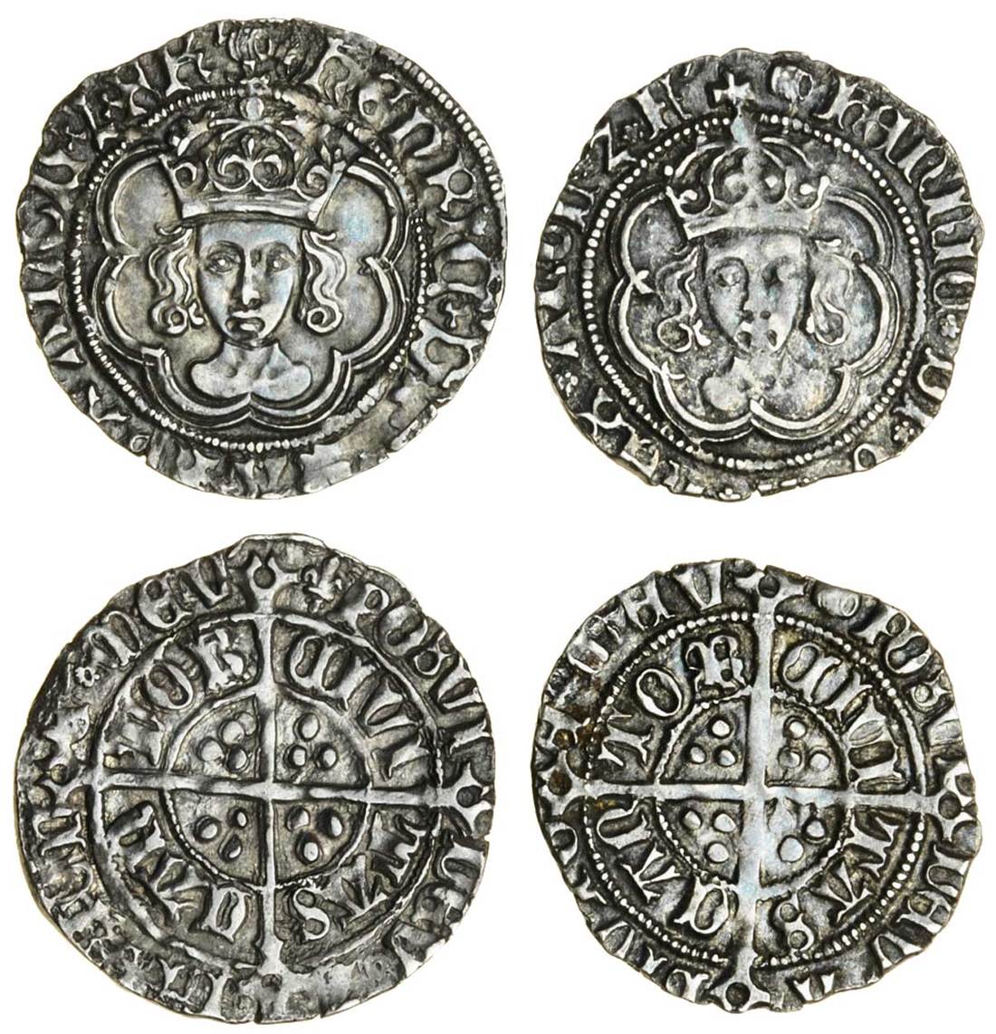 Henry VII (1485-1509), Halfgroats (2), Canterbury, King and Archbishop Morton jointly, type IIIA, 1.51g, m.m. tun and lis/lis, henric di gra rex angl z fr, trefoil stops, nothing on cusps or by neck, rev. posvi dev adivtore mev, rosette stops, civi tas can tor, nothing at centre; type IIIB, 1.57g, m.m. tun, angl z f, rosette stops, rev. adivtoe, no stops (N.1712; S.2209, 2210; Stewartby p.441), the first toned, good very fine, the second very fine (2)