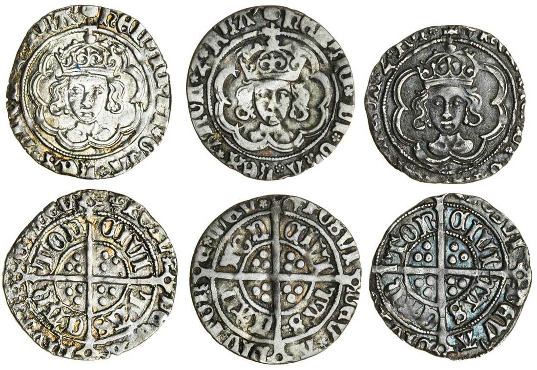 Henry VII (1485-1509), Halfgroats (3), Canterbury, King and Archbishop Morton jointly, all type IIIB, 1.53g, m.m. tun/lis, henric di gra rex angl z fra, rosette stops, rev. posvi etc, rosette stops, civi tas can tor, nothing at centre; 1.26g, obv. as previous, rev. rosette after tas and can/lon, tor/don; 1.36g, m.m. lis/tun, angl z fr, rosette stops, rev. no stops (N.1712; S.2210 (2), 2210/2211; Stewartby p.441), the first a little bright with light toning, good very fine, the second good fine, the last very fine (3)