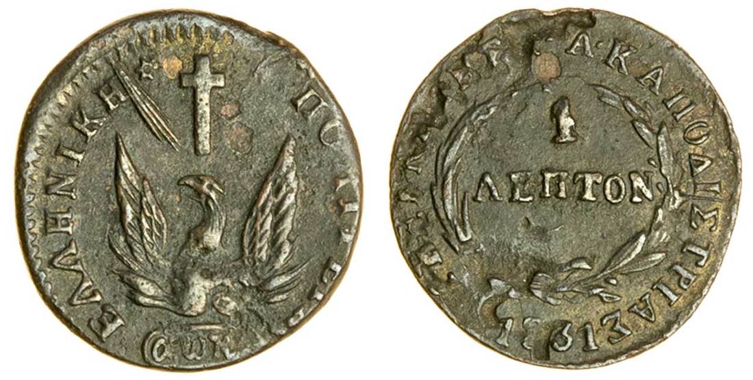 (x) John Capodistrias (1828-31), Lepton, 1831, mint of Aegina, phoenix, no inner circle and with longer cross and rays, Greek date in cartouche below, rev. value in wreath, date below (Divo 8; KM 9), slightly off centre, some carbon spots and other surface flaws, very fine