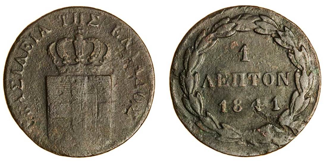 (x) Otho (1832-62), Lepton, 1841, Athens, crowned shield, rev. value in wreath (Divo 29h; KM 13), fine, rare