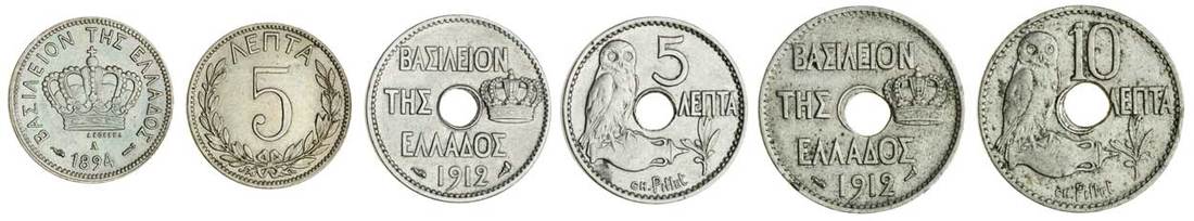 (x) George I (1863-1913), 5-Lepta, 1894 A, Paris, crown, rev. value in wreath (Divo 65a; KM 58), about ucirculated, 5-Lepta and 10-Lepta, both 1912, Paris, crown, rev. owl on vase (Divo 66, 62; KM 62, 63), about uncirculated and extremely fine (3)