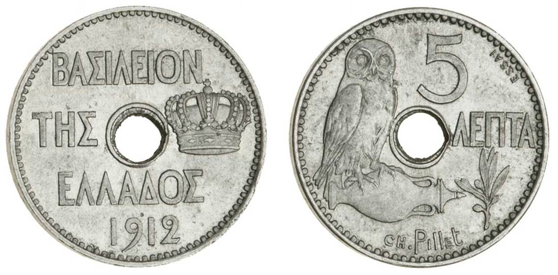 (x) George I (1863-1913), essai/pattern 5-Lepta, 1912, Paris, struck in cupro-nickel, crown, date without mintmark below, rev. owl on vase, essai and value to right, plain edge (Divo P93; KM E24), PCGS SP 65