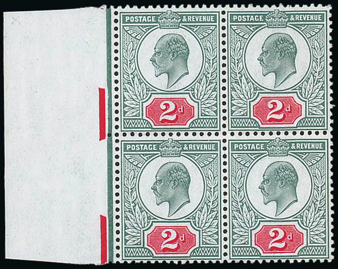 — 2d. dull blue-green and carmine, block of four from the left of the sheet, unmounted mint, hinged in the margin, fine. Specialised M12 (2), £720+. Photo