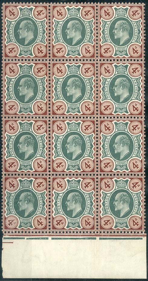 — 4d. deep green and chocolate-brown, block of twelve (3x4) from the foot of the sheet, original gum; fine. Specialised M24 (2), £900+