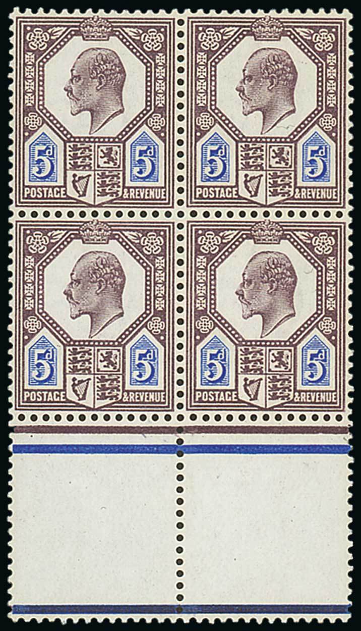 — 5d. slate purple and ultramarine, block of four with interpanneau margin at foot, unmounted mint; superb. Specialised M29 (2), £575+. Photo