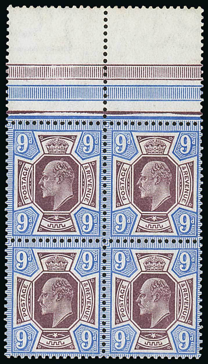 — 9d. slate-purple and ultramarine, block of four with interpanneau margin at top, unmounted mint; fine. Specialised M40 (3), £1,100. Photo