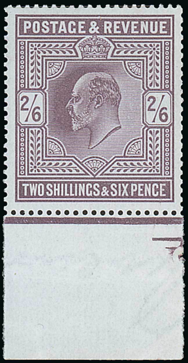 2/6d. lilac, unmounted mint from the foot of the sheet; fine and fresh. Specialised M48 (1), £525. Photo