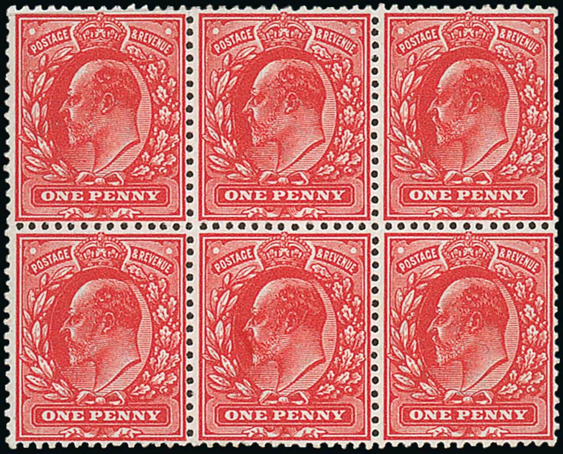 1d. aniline rose, block of six (3x2), unmounted mint; a few tiny wrinkles, fine and scarce. Specialised M6 (7), £1,800+. Photo