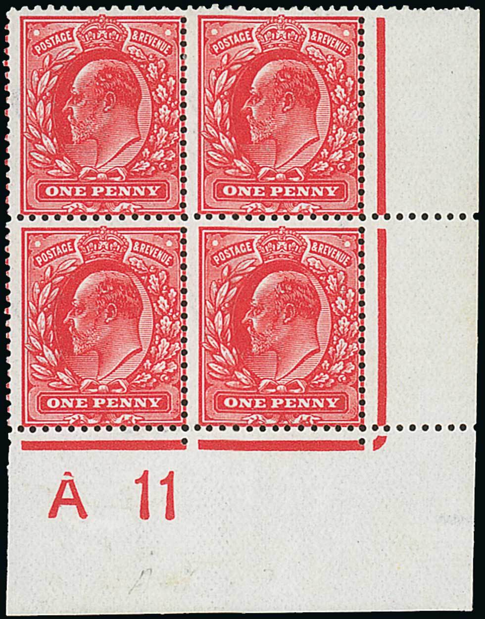 1d. aniline rose, Control "A11" block of four from the lower right corner of the sheet, original gum with the Control pair remaining unmounted mint; centred to right, fine. Specialised M6 (7). Photo