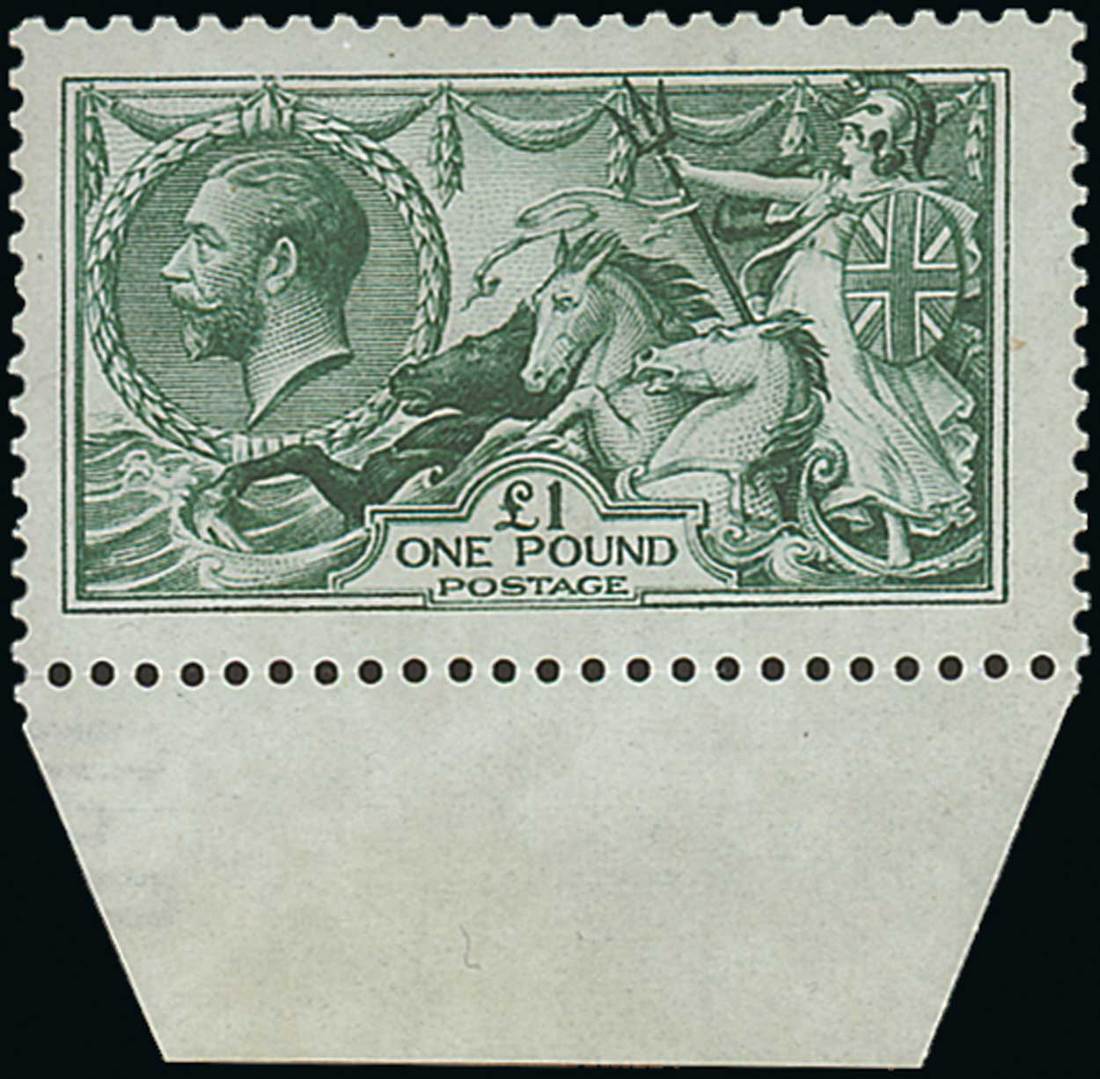 £1 dull blue-green, unmounted mint from the foot of the sheet, minor wrinkles. Superb. S.G. 404, £4,800. Photo