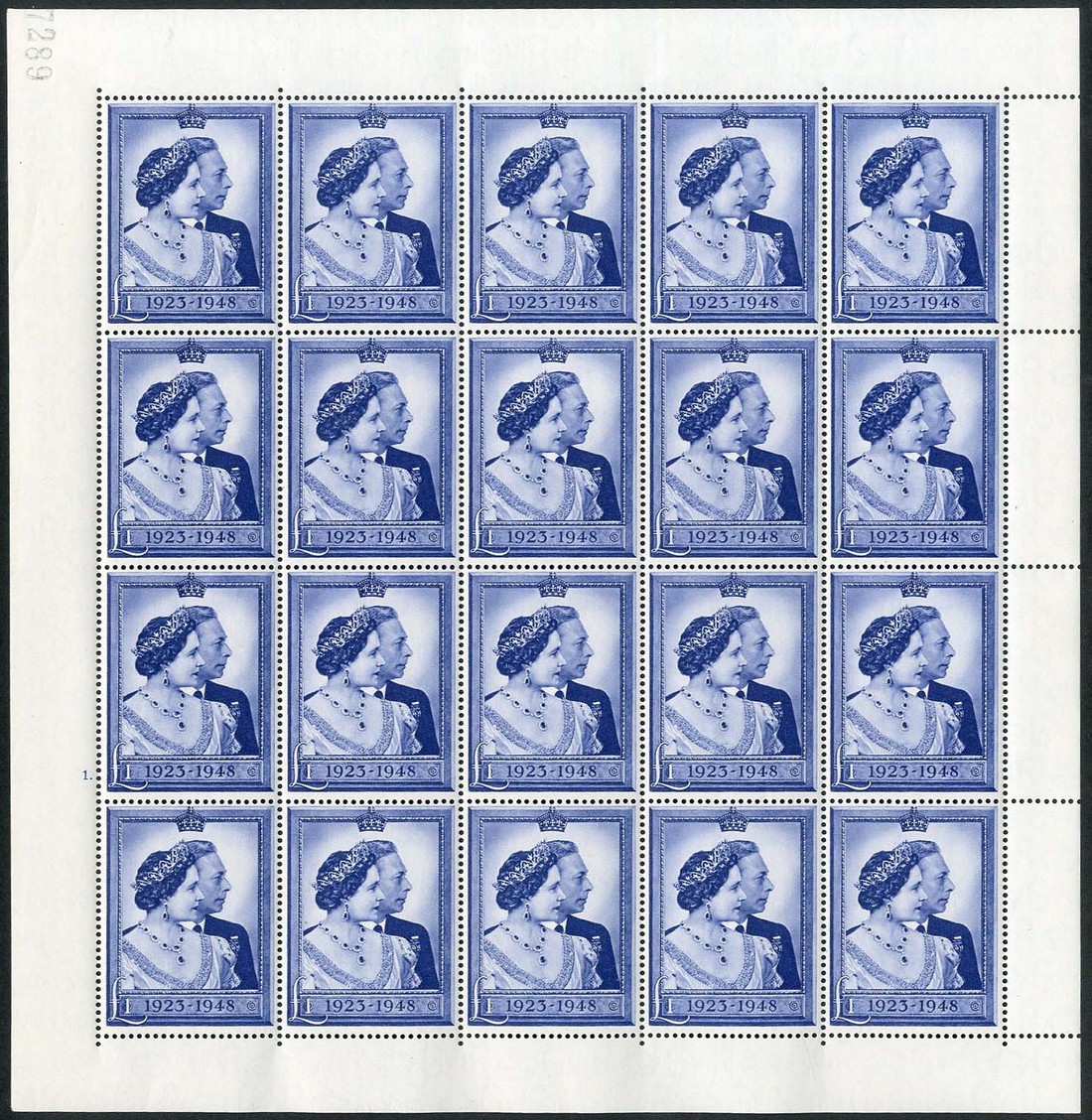 1948 Silver Wedding £1 blue, complete sheet of twenty (5x4), unmounted mint; fine. S.G. 494, £800+