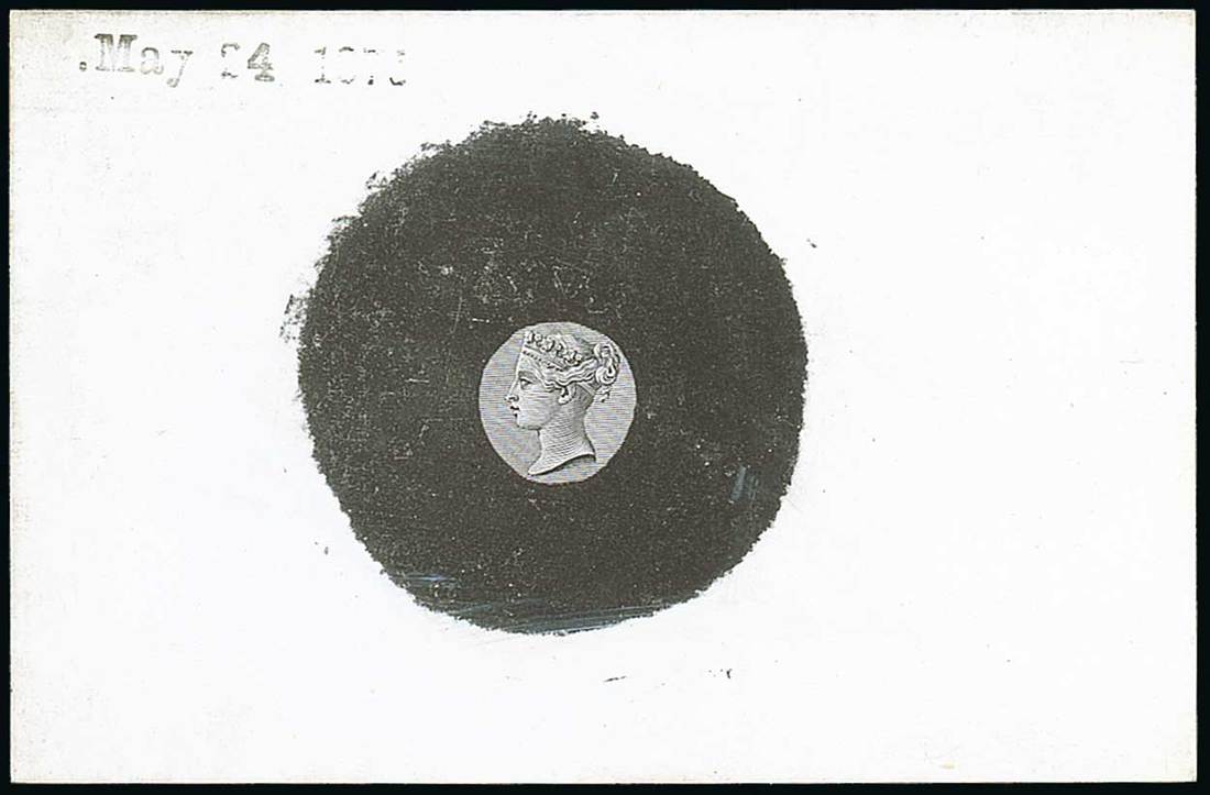 1873 small head in circle with large uncleared surround, in black on glazed card (92x60mm.) dated "May 24, 1873". Photo