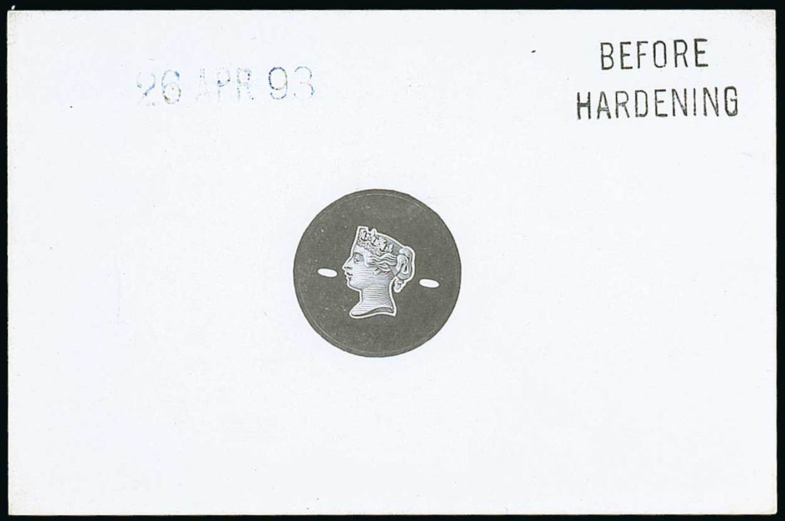 1893 head with uncleared surround, in black on glazed card (92x60mm.) marked "before hardening" and dated "26 apr. 93". Photo