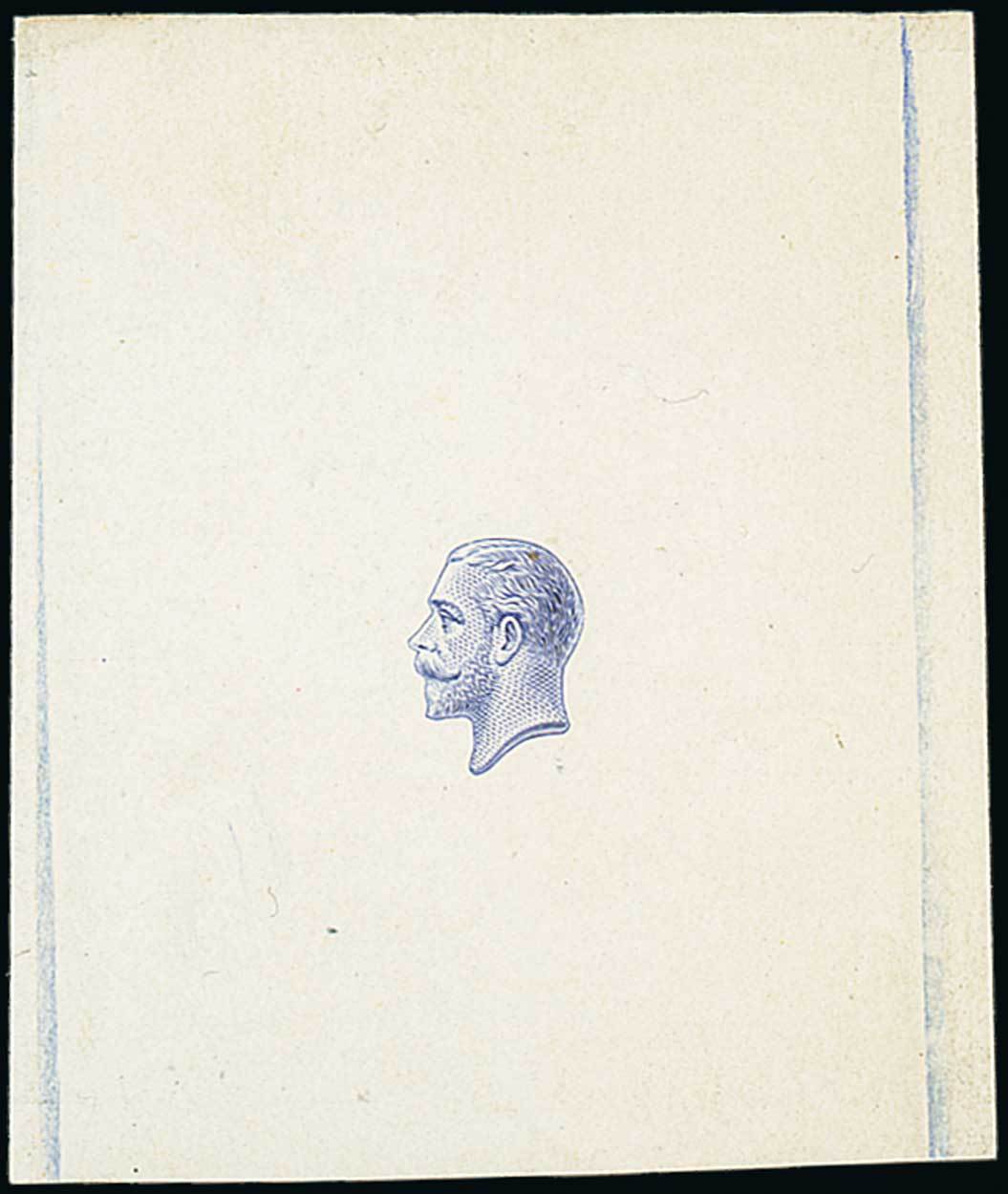 Large engraved head in blue on semi-glazed wove paper (52x63mm.); as used for the Cayman Islands 1921-26 issue. Photo