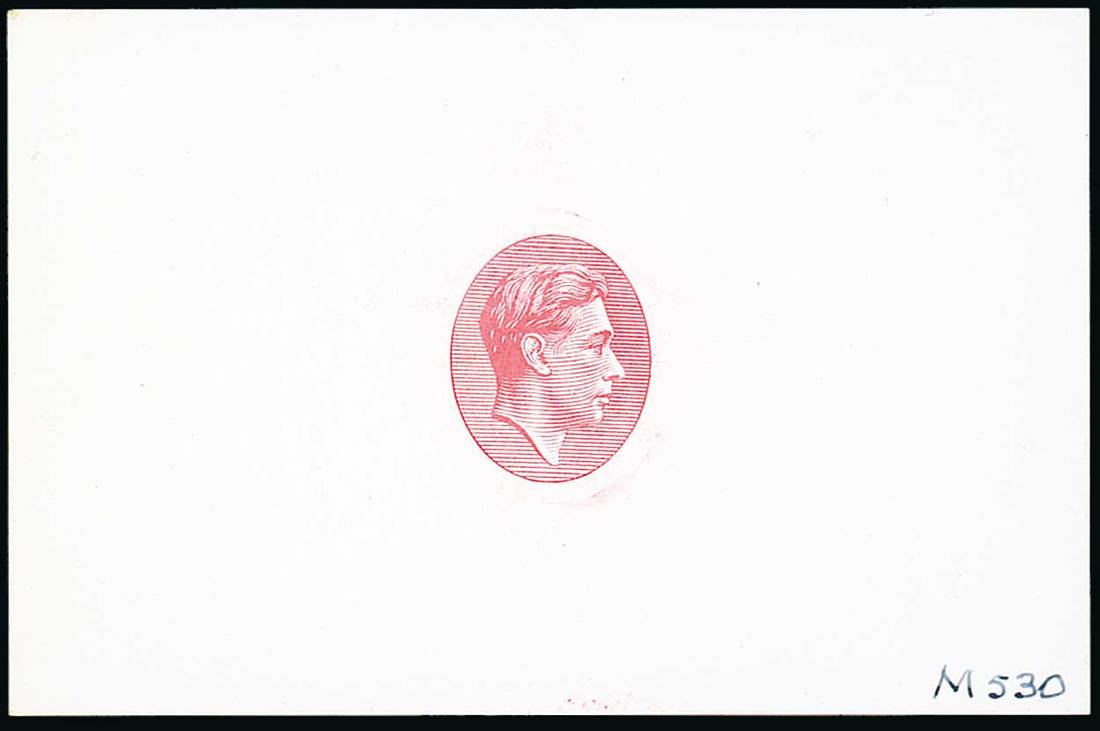 Large young head in oval-framed lined background, in carmine on glazed card (92x60mm.) numbered "M530". Photo