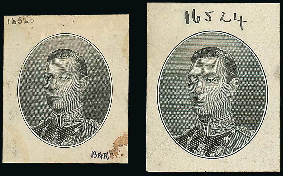 16523, in cross-hatched oval-framed surround, marked "barb" at foot; small light mark at lower right corner, and 16524, similar to 16523 though slight larger; diagonal crease. Photo