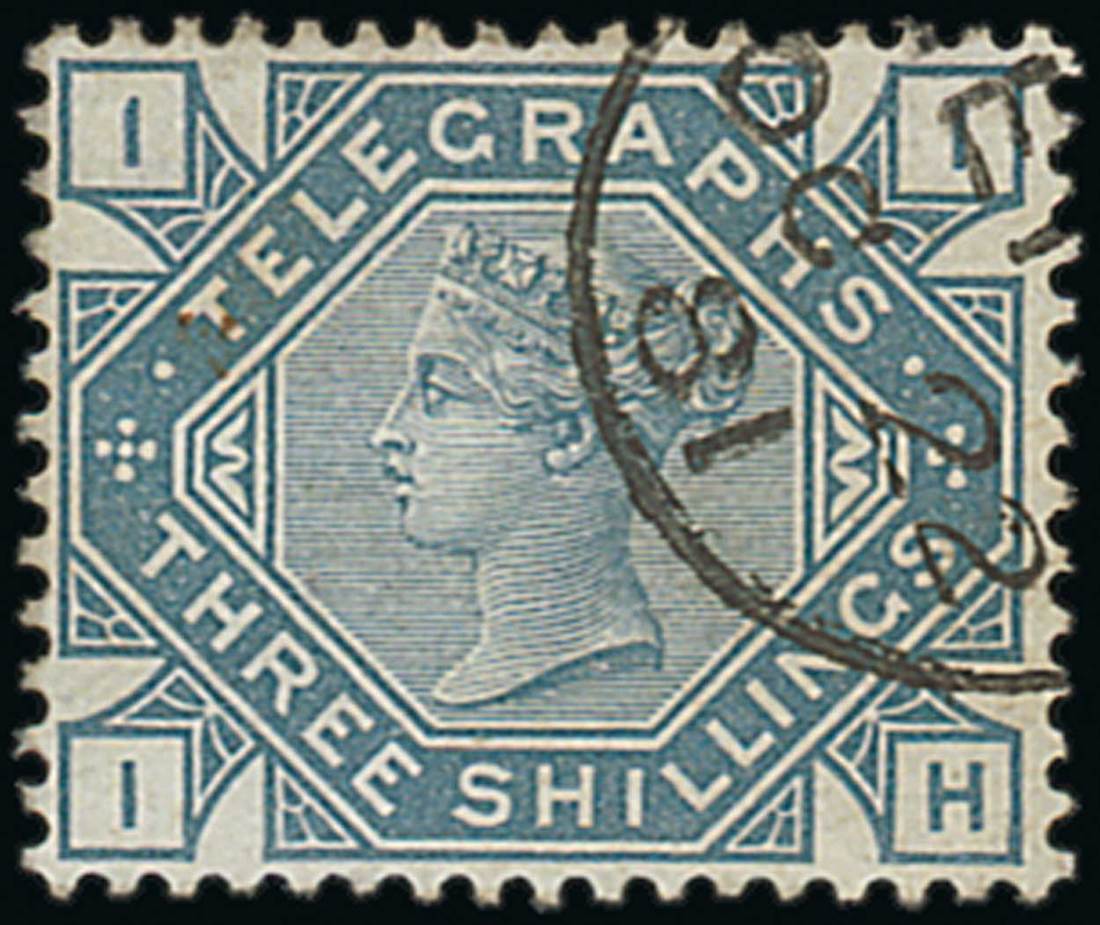 1881 3/- slate-blue, IH, watermark crown (sideways inverted) fine used. Rare. Behr Certificate (2014). S.G. L230, £3,400. Photo