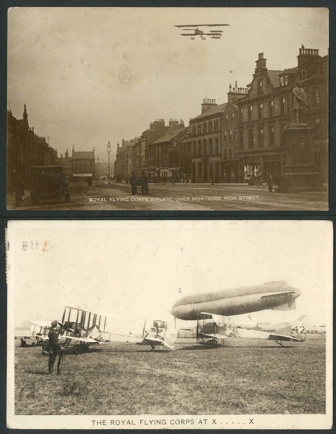 1913 Seahorse £1 green cancelled "montrose/ 5 au/ 14" and further obliteration likely to be telegraphic, a significant cancel dated on the outbreak of World War One, with Montrose the site of an R.F.C. aerodrome. Offered with three R.F.C. postcards (two of Montrose), and article offering supporting evidence. A fascinating group. S.G. 403, £1,600