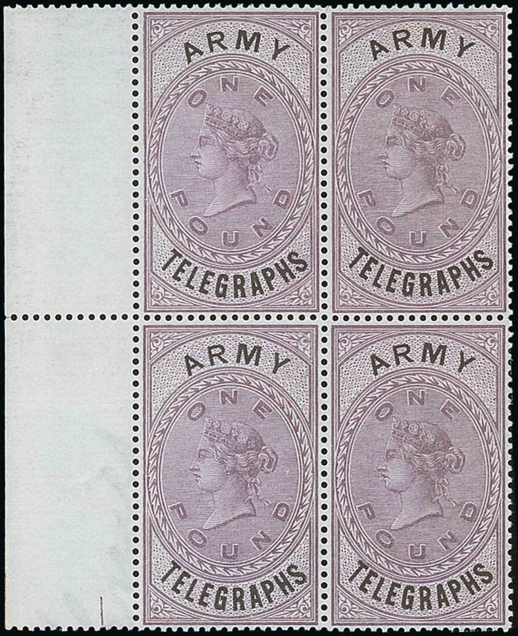 1899-1900 £1 lilac and black, left marginal block of four, fresh unmounted mint, horizontal crease through lower stamps hardly detracts. Superb. S.G. AT12, £800 Photo