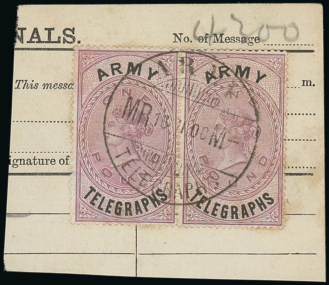 ½d. to £1 set of ten in pairs (missing only the rare 8d.), each fine used on piece, variously cancelled with Enslin, Modder River, Standerton, datestamps, 2/6d. and 2d. both with unusual Elandslaagte c.d.s. An attractive set which would be very difficult to replicate. S.G. AT1/6, AT8/12 Photo