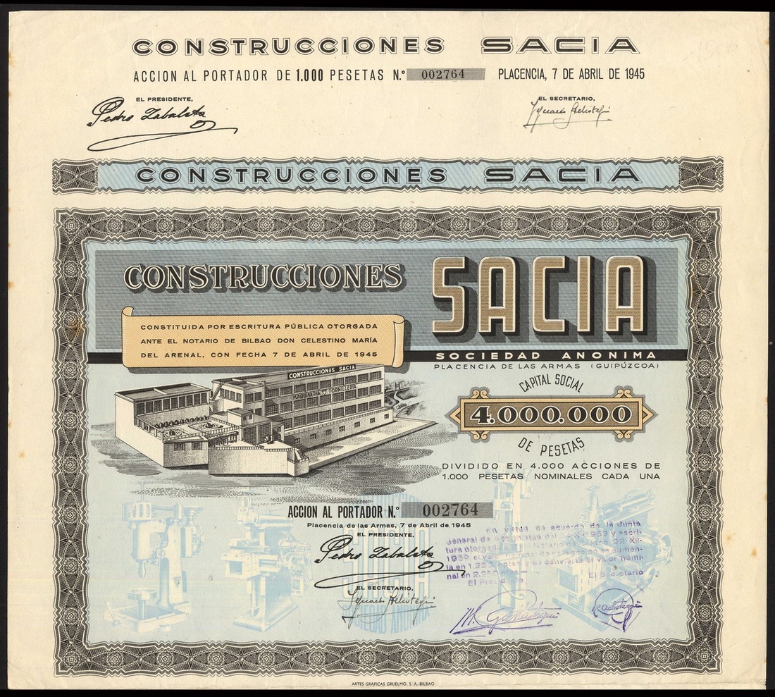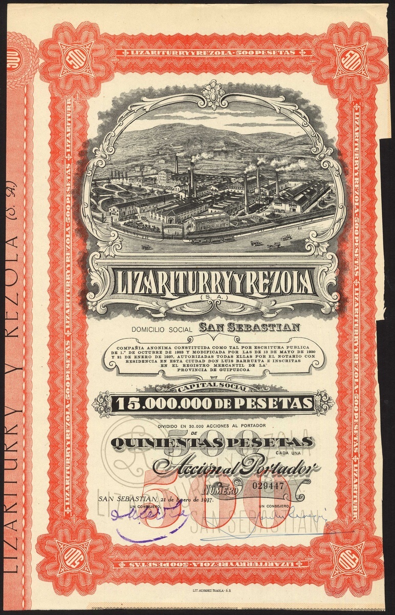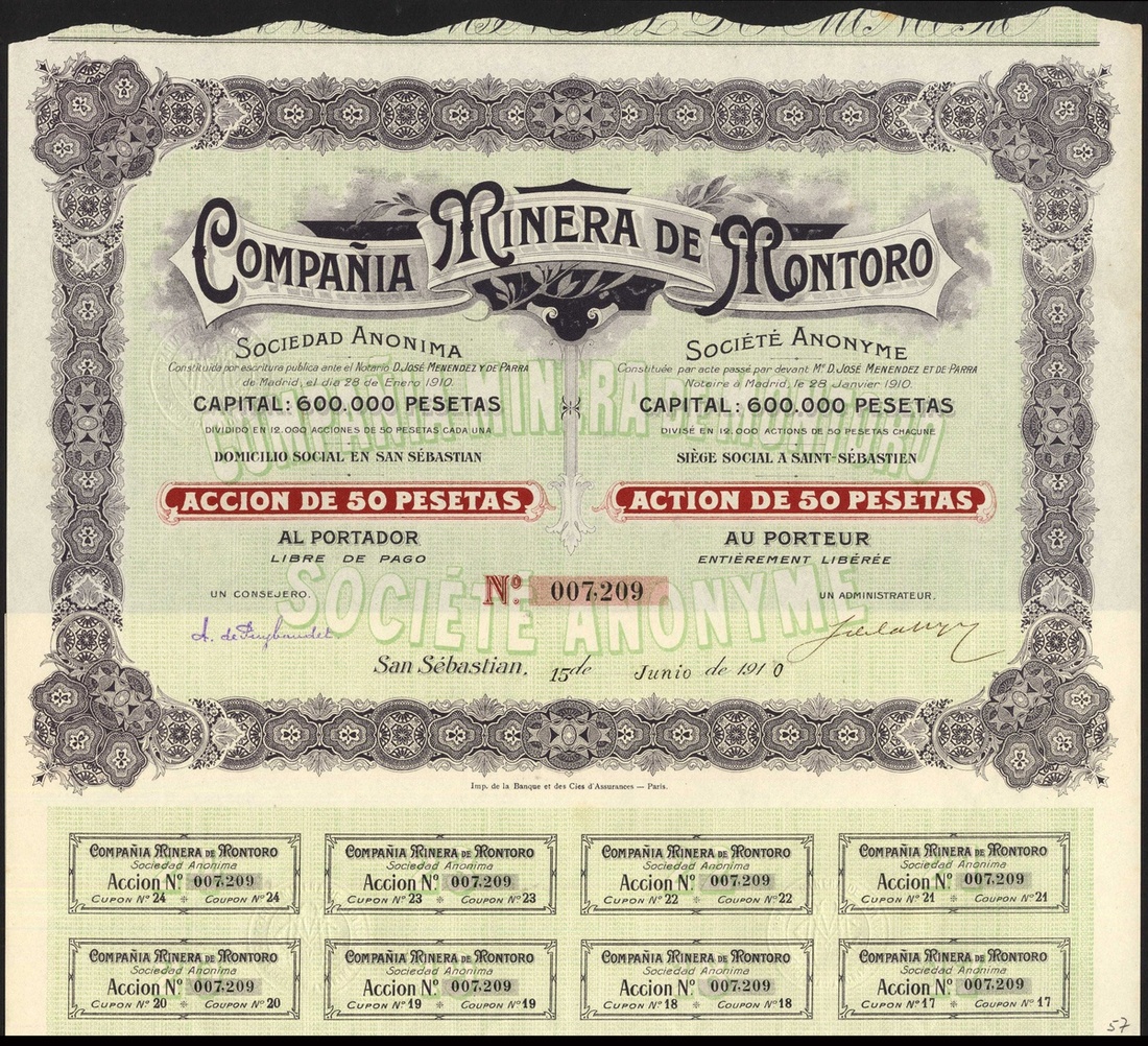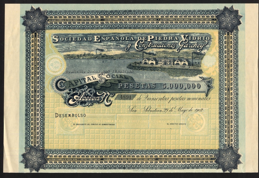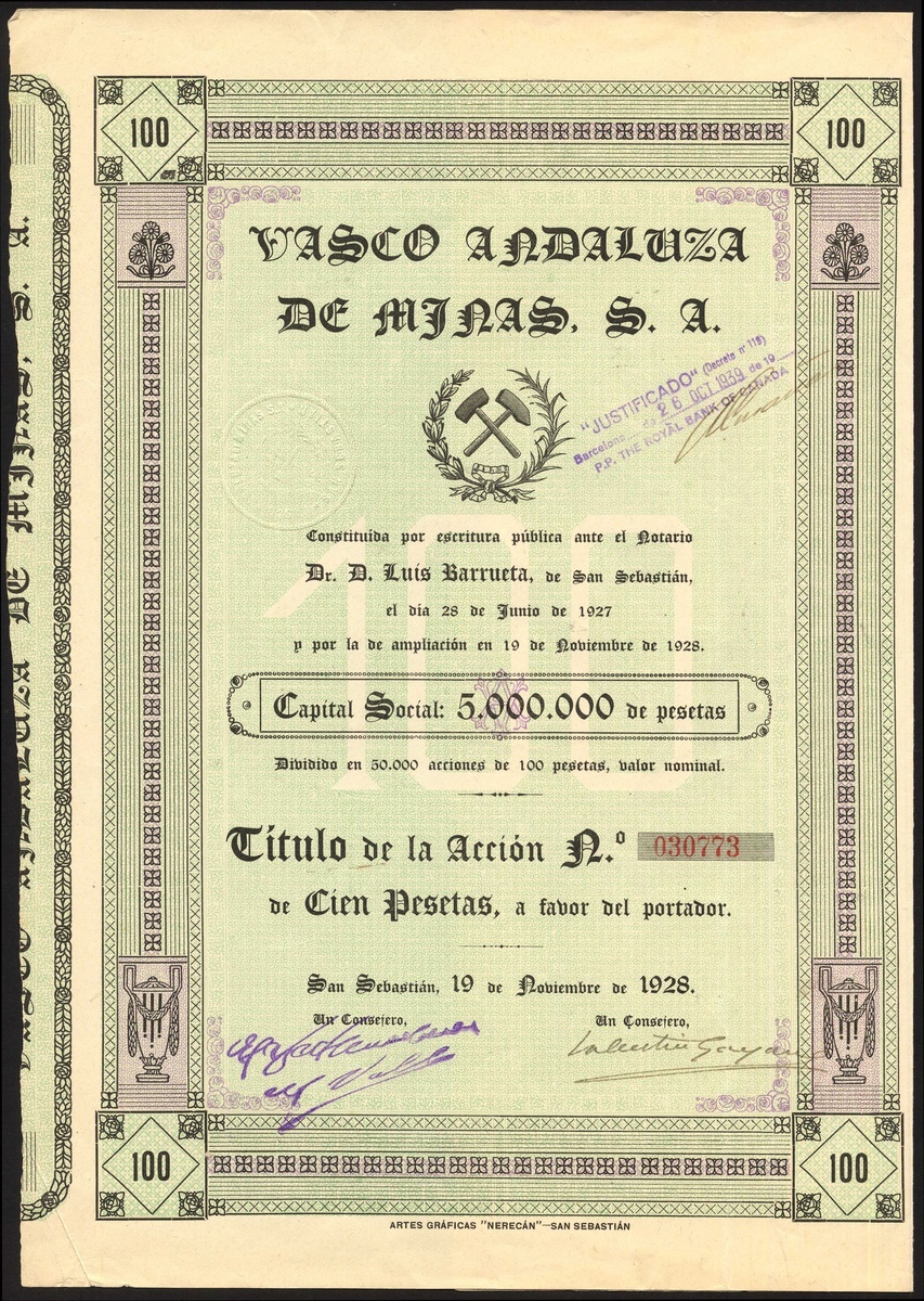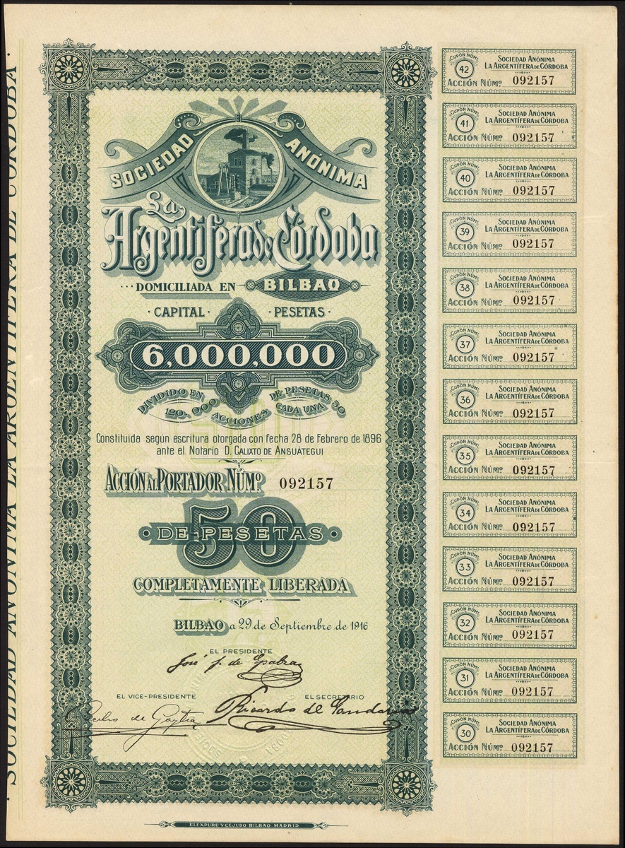A collection of Spanish Commercial and Industrial companies (94), dating from 1854 to the 1970's, most being post 1900, some unissued, many interesting subjects included and many have colourful vignettes and many with coupons. Generally VF to EF. A full list is available on request.