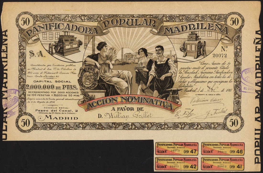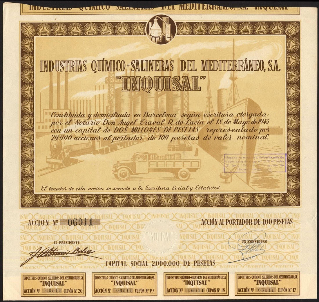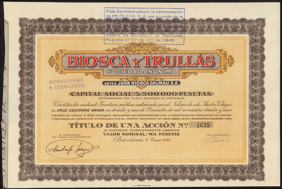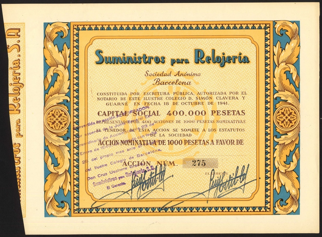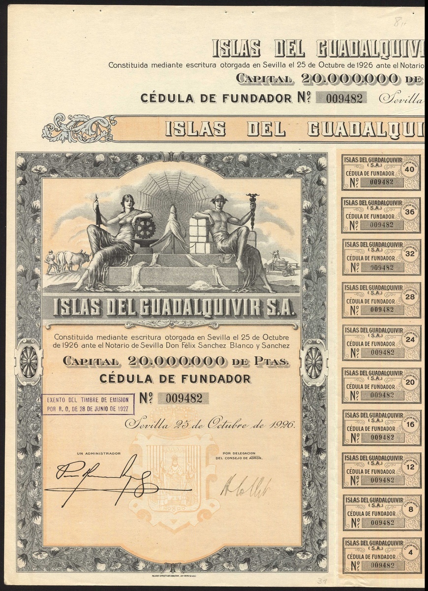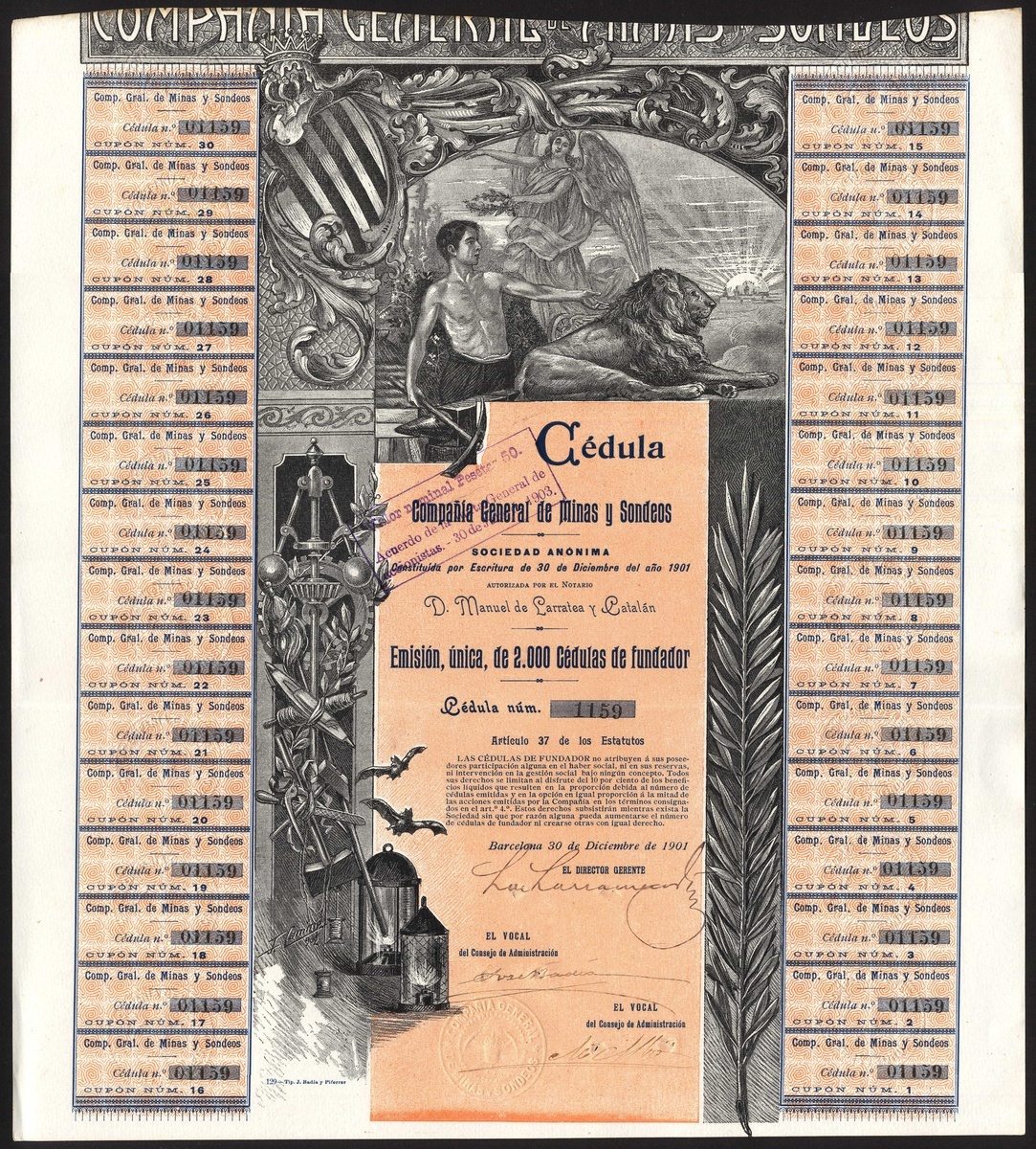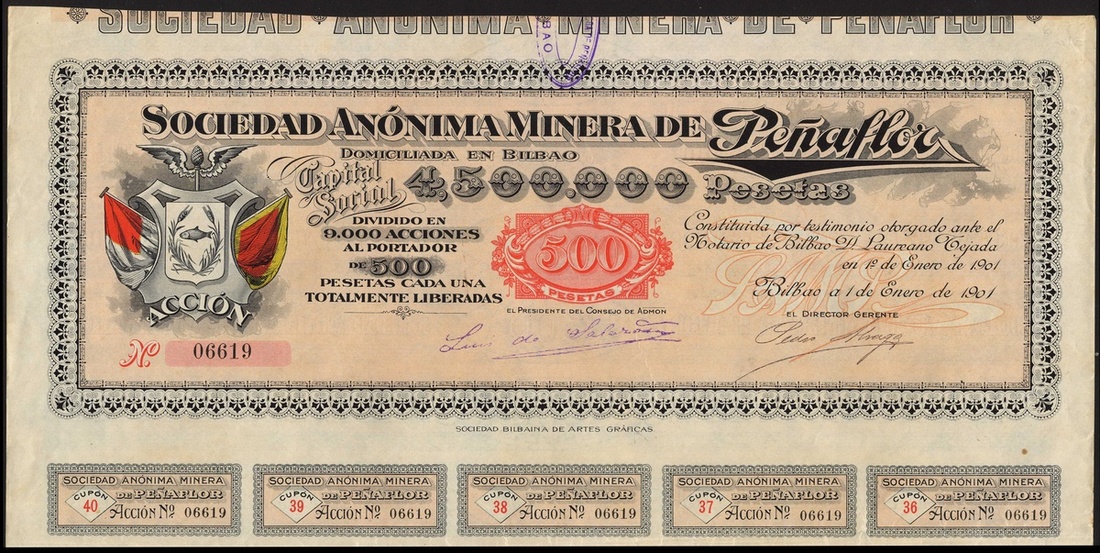 A collection of Spanish Commercial and Industrial companies (94), dating from 1854 to the 1970's, most being post 1900, some unissued, many interesting subjects included and many have colourful vignettes and many with coupons. Generally VF to EF. A full list is available on request.