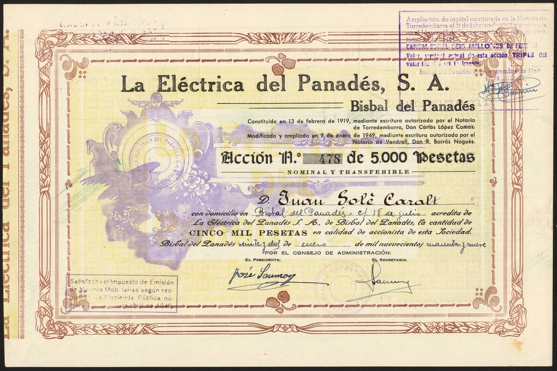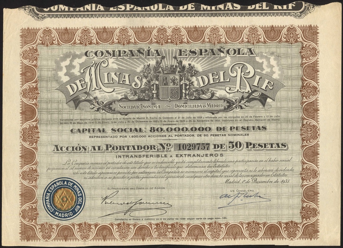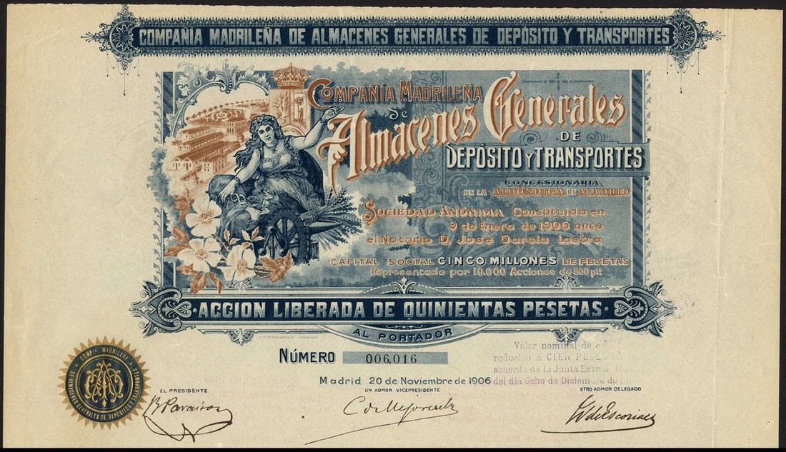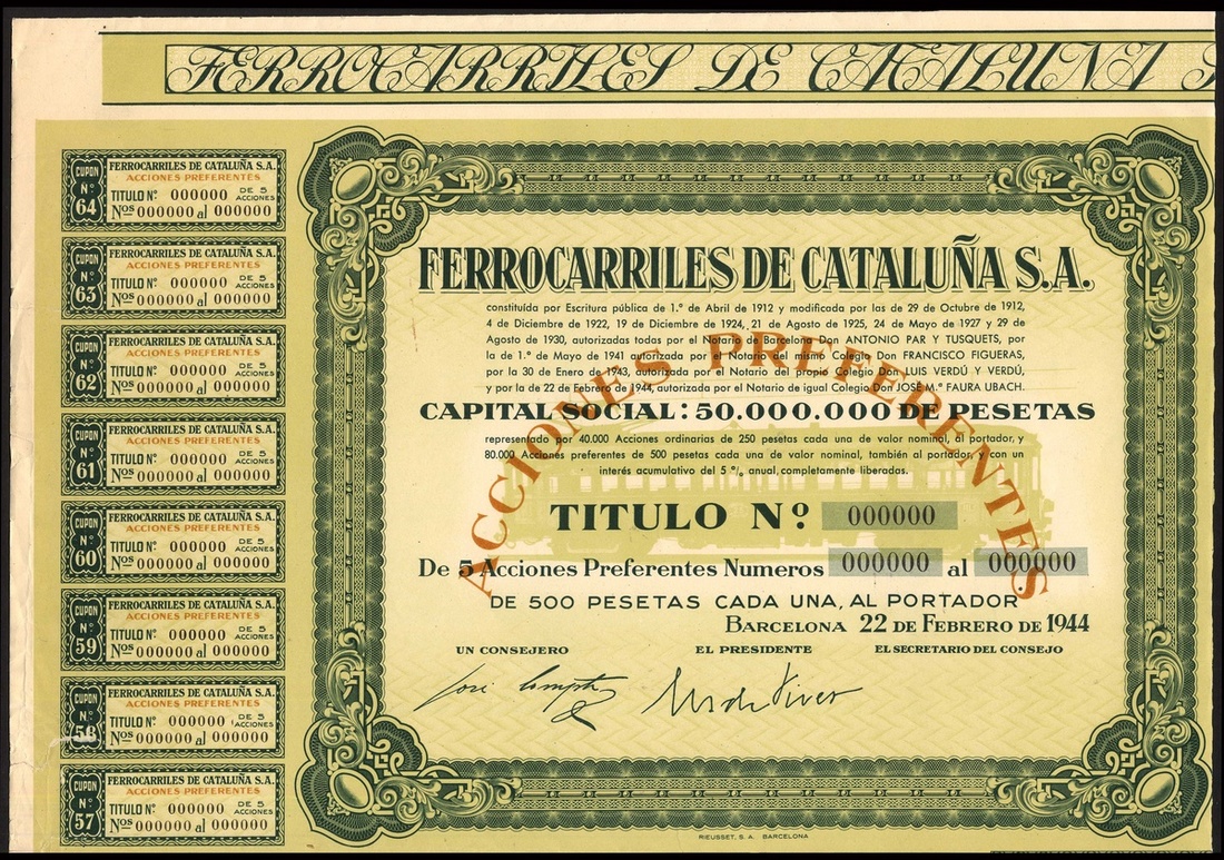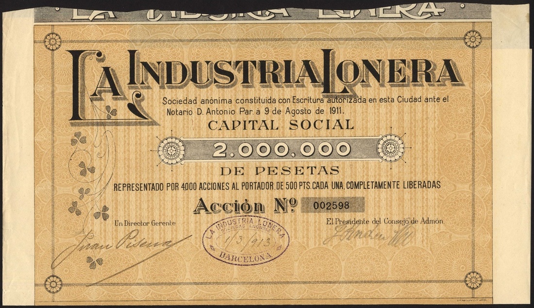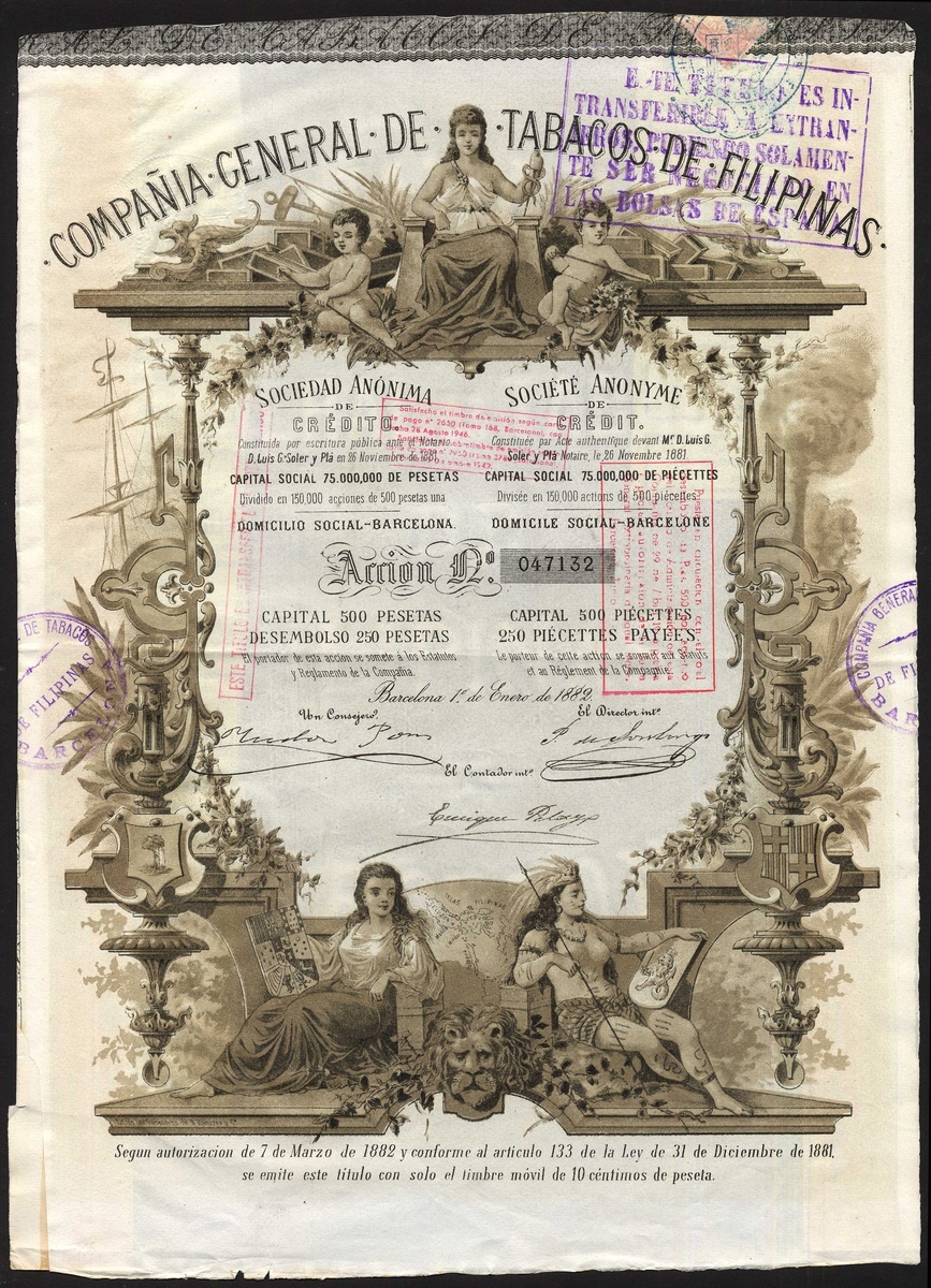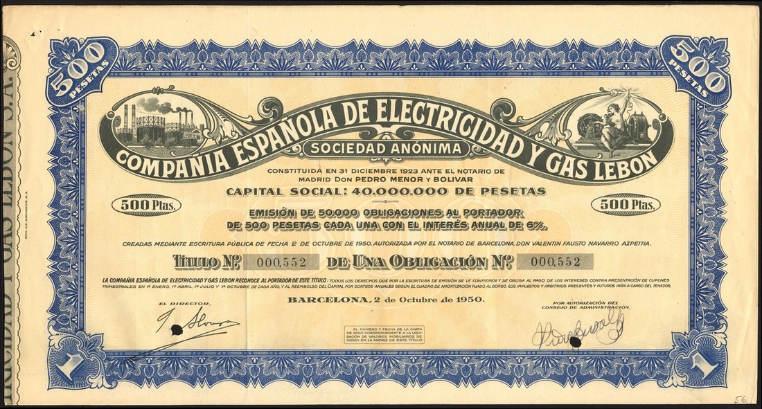 A collection of Spanish Commercial and Industrial companies (94), dating from 1854 to the 1970's, most being post 1900, some unissued, many interesting subjects included and many have colourful vignettes and many with coupons. Generally VF to EF. A full list is available on request.