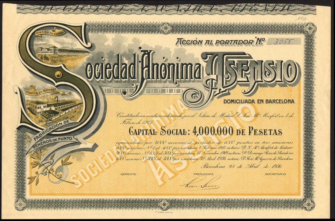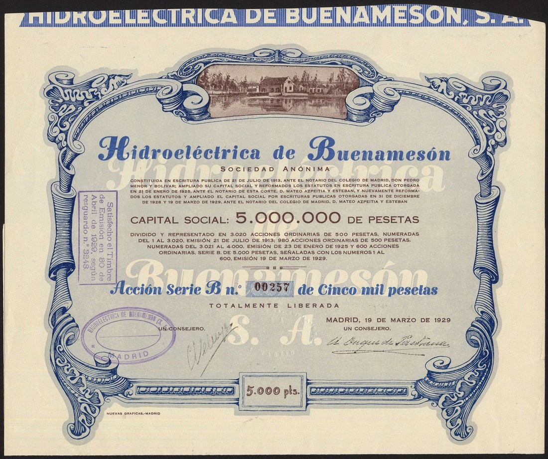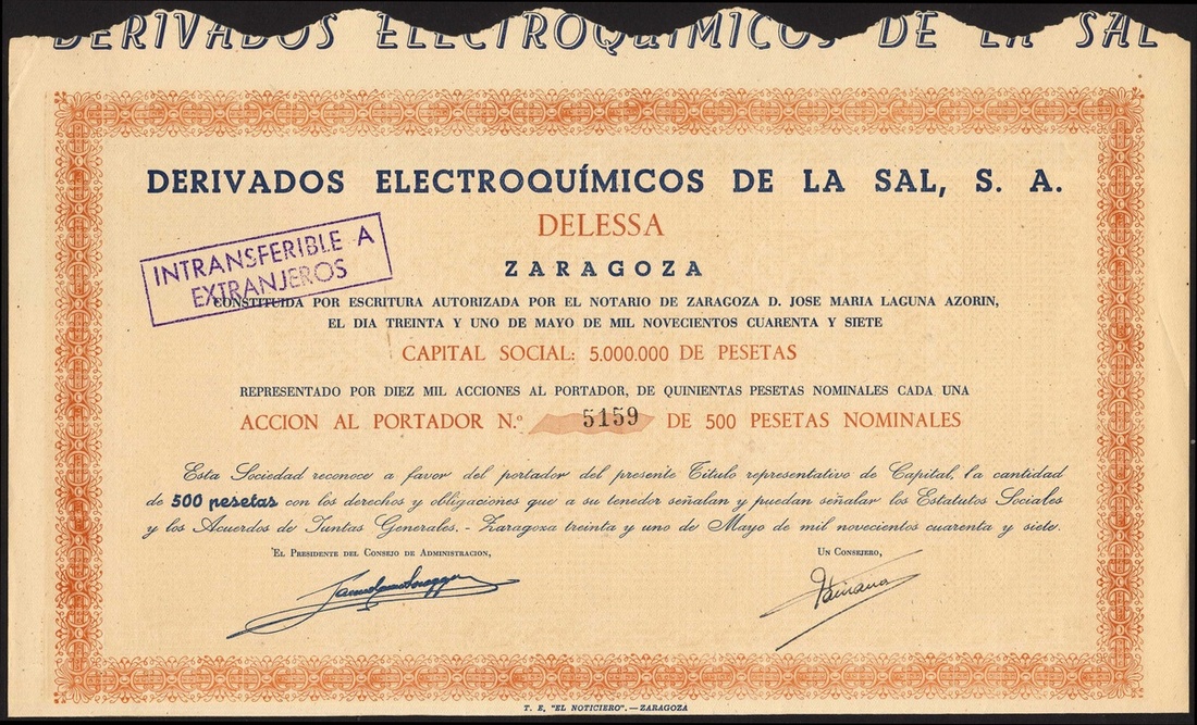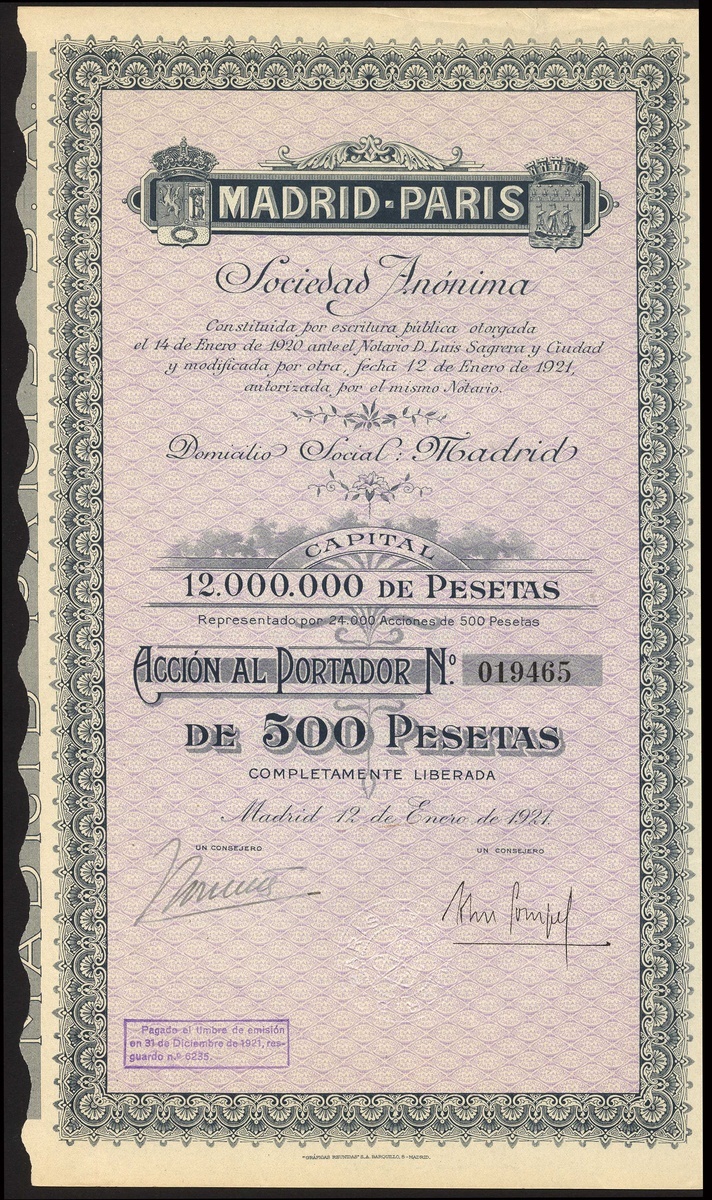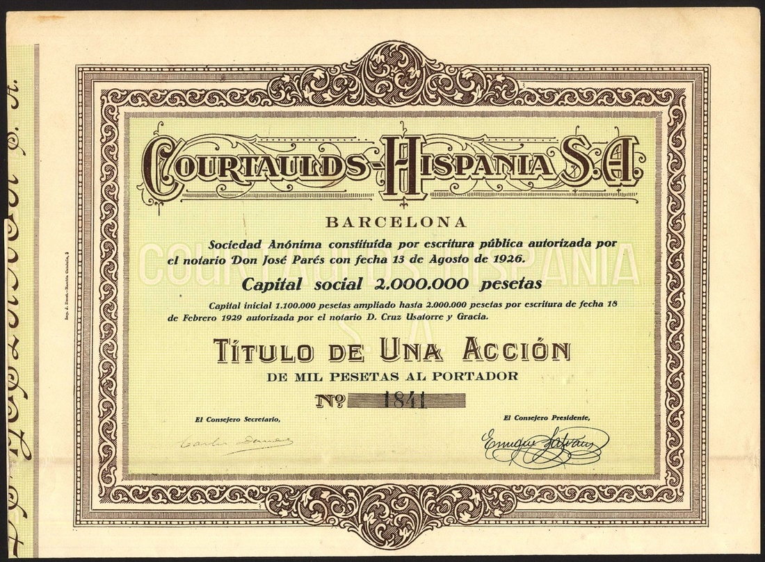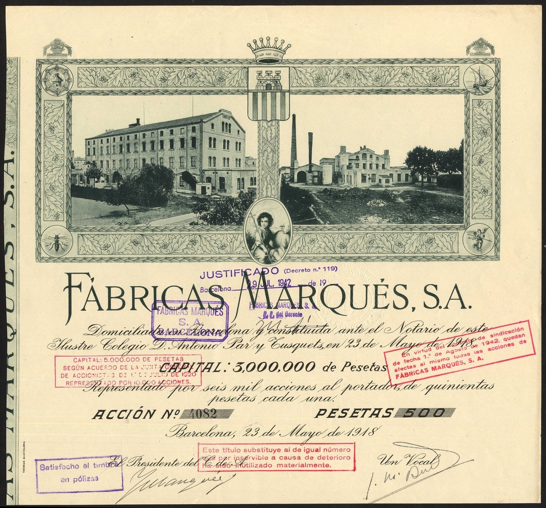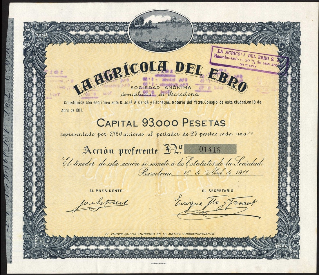 A collection of Spanish Commercial and Industrial companies (94), dating from 1854 to the 1970's, most being post 1900, some unissued, many interesting subjects included and many have colourful vignettes and many with coupons. Generally VF to EF. A full list is available on request.