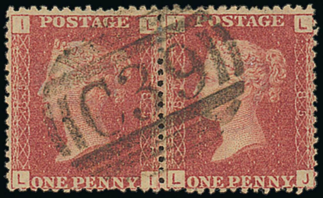 1d. rose-red horizontal pair sharing superb complete "C39" horizontal oval, very fine. Sc. A2; S.G. Z1, unpriced. Photo